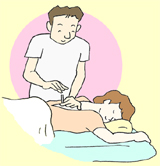 肘で全体重を乗せた男性のマッサージ,凄く痛いけど,凄く効きますね・・。(笑)そして,その後に,針(鍼)を打って貰いながら,電気を流す・・・。凄く効果あります・・。(笑)