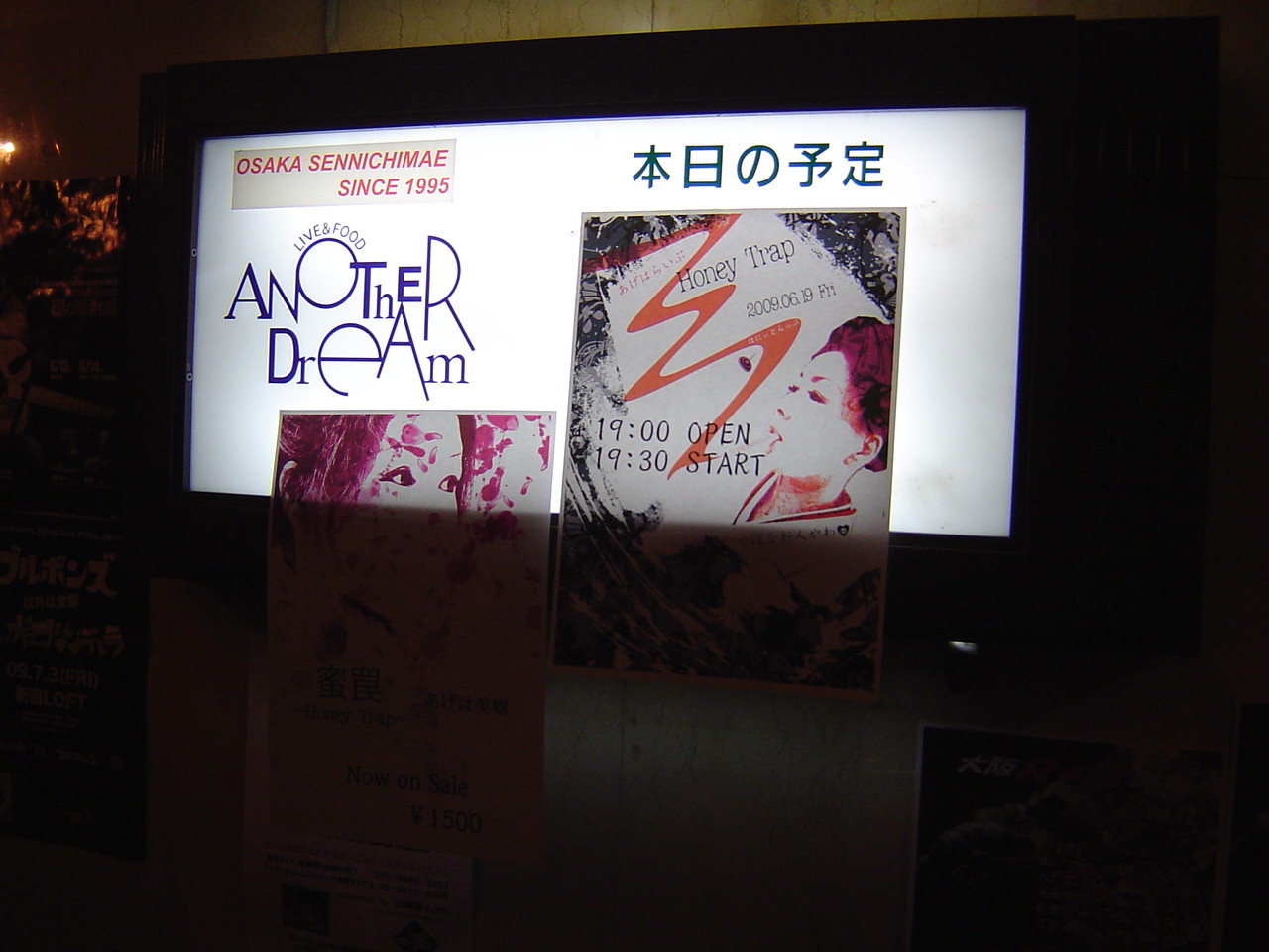 19日のアナザードリーム出演バンドは,「honey trap」というバンドでした。チケット・1500円で販売してました。(笑)