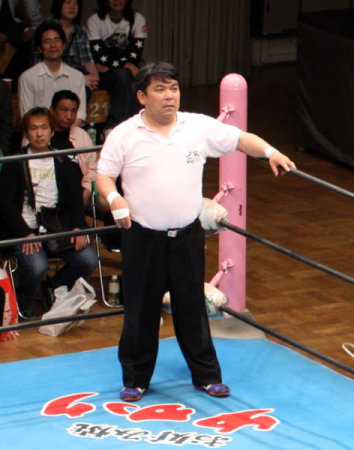 大阪プロレスの入り口を写真で撮ったのですが,入り口脇に花束と遺影が飾られていました。大阪プロレスの名物レフリー・テッドさんが,6月15日に亡くなられてしまったようです。