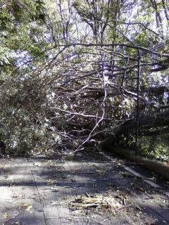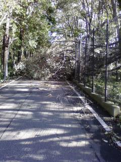 台風15号の爪痕は大きかった・・・自宅近くの職業〇力開〇大学校敷地面の大木が真っ二つに折れ,国道と敷地面を分けているフェンスを壊し,国道を塞ぎ,道が通行止めになっていた・・・(写真参考)